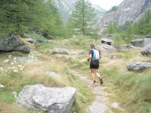 Tagen in den Walliser Bergen in der Schweiz nahe der italienischen Grenze am Simplon-Pass. Der kleine Grenzort Gondo schmiegt sich an steilen