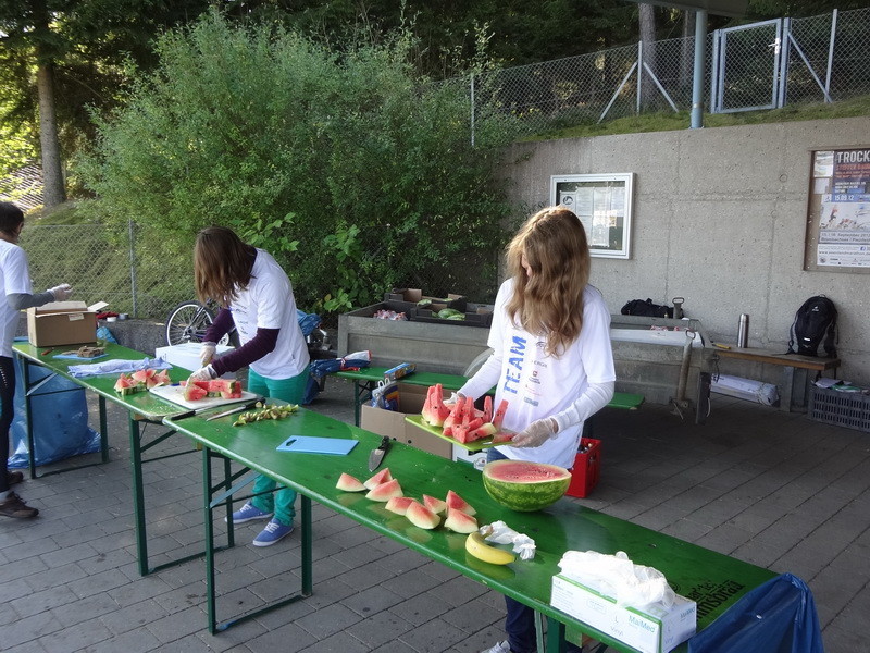 Zwei Staffelläufer machen sich fertig, Thomas rennt durch und dann kommen auch schon Andrea und ich und machen uns auf die zweite Runde.