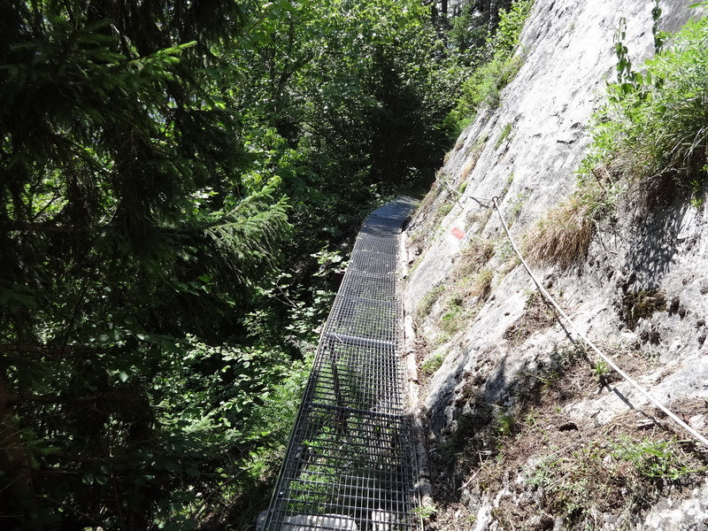 Obwohl der Weg auch eben weiter gehen würde, schickt uns die Markierung steil nach oben. Weiter vorne ist schon zu sehen, dass beide Wege wieder zusammen kommen. Was soll das denn? Muss das sein? Als ich oben bin, weiß ich, warum: ein genialer Blick runter nach Interlaken und dem Brienzer See entschädigt für die Mühe.