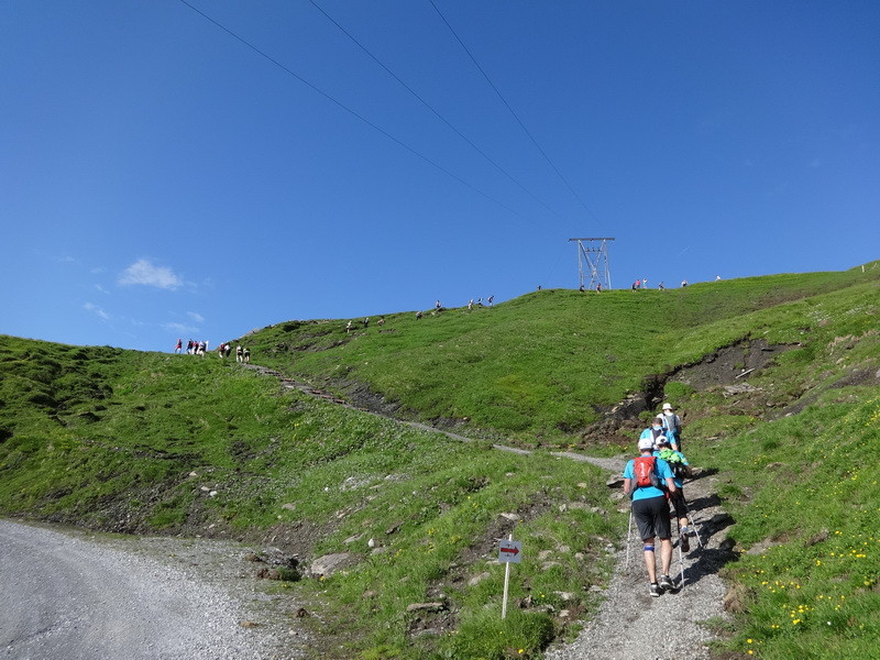 Über die ersten Schneefelder schraubt sich der Weg weiter hoch. Ich bin der irrigen Ansicht, das wäre bereits der Anstieg zum Faulhorn und bin bass erstaunt, dass wir den „Gipfel“ schon bei einer Höhe von 2400 Metern erreichen (das Faulhorn hat 2680). Ist auch nicht der Faulhorngipfel, sondern nur die Fernandeshütte. Die Landschaft ist so spektakulär, dass einem die Spucke wegbleibt und gute Laune ist vorprogrammiert. Etwa 17 km in 3 Stunden sind geschafft.