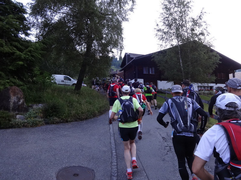 Punkt 7:00 Uhr dann der Startschuss zu 51 km durch das schönste Gebiet des Berner Oberlandes. Es geht vom Start weg mehr oder weniger steil bergauf und viele rennen wie verrückt. Ich lass mich nicht hetzen und bin gefühlt bald am Ende des Feldes (es bleibt aber beim Gefühl).