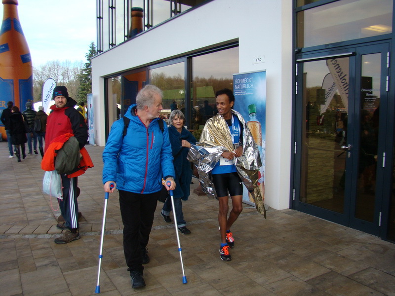 Was für ein unerwartet gutes Ergebnis! Ich freue mich richtig und bedanke mich bei Floh, denn ohne seine Motivation wäre ich niemals ohne Gehpausen und in so einer guten Zeit durchgekommen. Und Kerstins Versorgungs- und Anfeuerungsarbeit darf auch nicht vernachlässigt werden! Schließlich stand sie viereinhalb Stunden in der Kälte und hat auf uns gewartet. Wenigstens war das Wetter weitgehend gut. Medaille bekommen wir leider keine, denn die sind angesichts des großen Läuferansturms schon aus. Wir bekommen sie aber nachgeschickt. Immerhin!