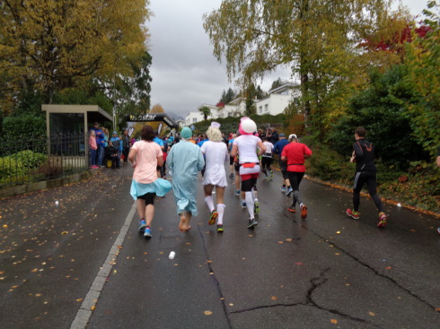 Es gibt auch ein paar verkleidete Läufer wie diese 3 Krankenschwestern. Bei einer blitzt immer mal der nackte Po hervor (sind aber Männer).