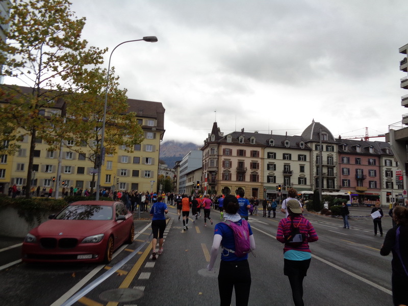 Die Strecke des Swiss City Marathons führt zunächst an der Hauptstraße neben dem See in den Ort hinein, über die Seebrücke, wo der Vierwaldstättersee in die Reuß mündet, dann am Veranstaltungsgelände des KKL vorbei (Kultur- und Kongresszentrum Luzern), um die Halbinsel Horw herum, immer am See entlang, schließlich zurück zum KKL und nach einer kurzen Passage durch die Altstadt wieder auf der Hauptstraße raus in Richtung Verkehrsmuseum. Dort ist auch das Ziel, aber vorher muss man das Ganze noch mal laufen, denn die Strecke ist nur 21 km lang. Es gibt mehrere Highlights, denn die Luzerner lassen sich immer wieder was Besonderes einfallen. Vor einigen Jahren wurde die Strecke durch den neu gebauten S-Bahntunnel geführt, der damals noch nicht in Betrieb war. Heute geht es durch das Stadium der Swissporarena.