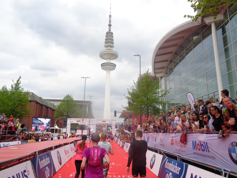 Wir wohnen wieder in unserem Hotel in unmittelbarer Nähe zum Start-/Zielbereich, von wo aus man erst 30 Minuten vor dem Start los muss. Mit uns startet auch Christina, die mit ihrem Freund da ist und das erste Mal in Hamburg läuft.