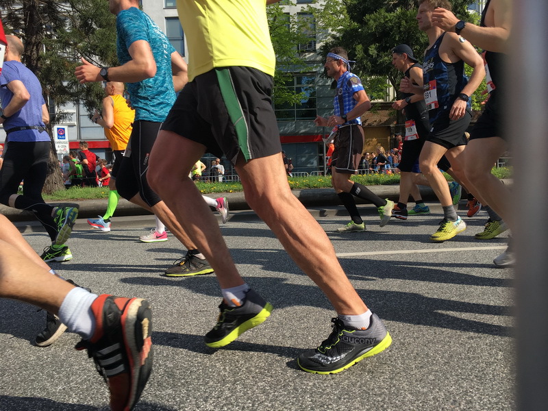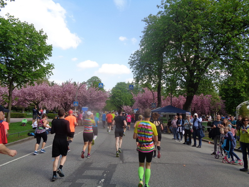 Dieses Jahr wird in Hamburg zum ersten Mal ein Halbmarathon angeboten, der um 8:30 Uhr startet (und den übrigens Sabrina Mockenhaupt gewinnt). Aus diesem Grund startet der Marathon diesmal erst um 9:30 Uhr, damit sich die Läufer nicht in die Quere kommen. Das Wetter ist traumhaft schön. Laut Wetterbericht soll es gegen Mittag etwas regnen, aber im Moment sieht es gar nicht danach aus.