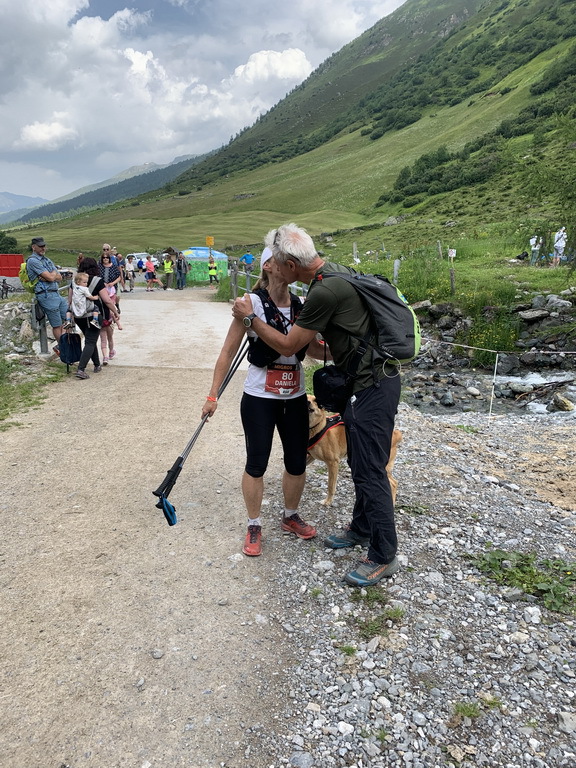 Dafür sieht Kerstin viele andere Läufer runterkommen wie z.B. Thomas, mit dessen Partnerin sich Kerstin lange unterhält (Thomas erreicht das Ziel nach 11:05 Stunden), John (im Ziel nach 11:30) und Daniela (sie schafft das Kunststück, nach 11:59:00 ins Ziel zu kommen!).