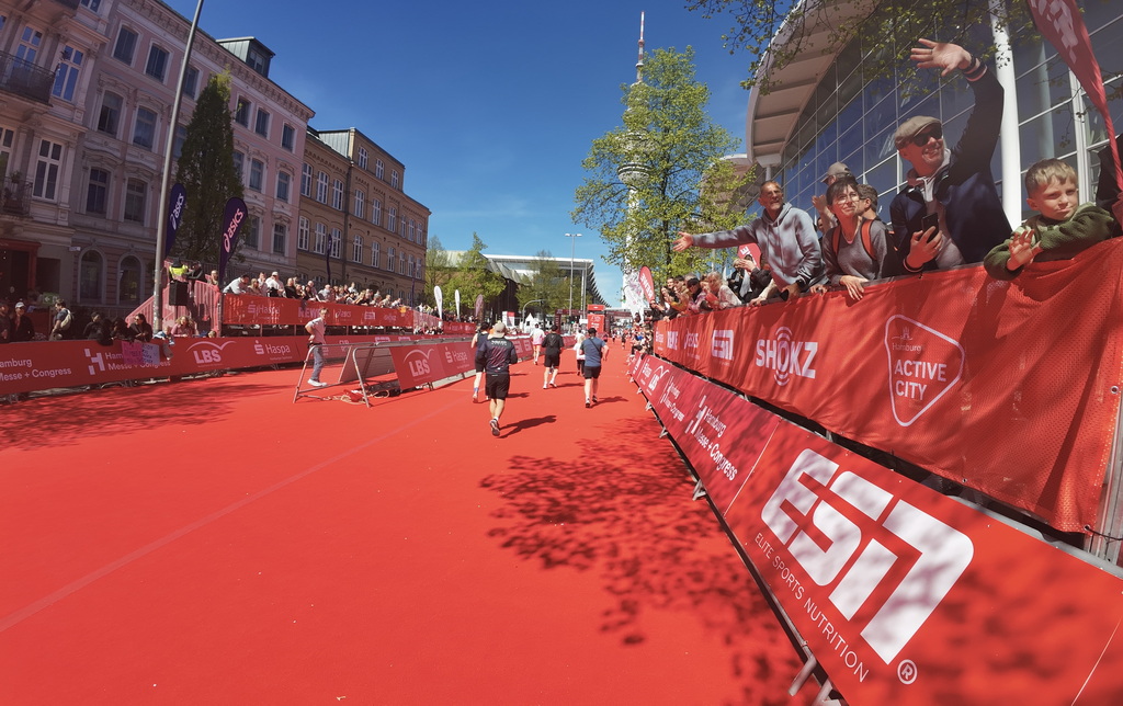 Schließlich geht es auf die Zielgerade und über den roten Teppich ins Ziel. Meine Nettozeit ist 5:28:55 – immerhin noch unter 5:30 geblieben, wobei mir das heute völlig egal ist. Ich hab’s geschafft und nur das zählt.
