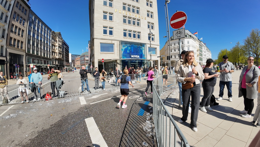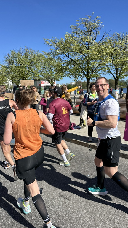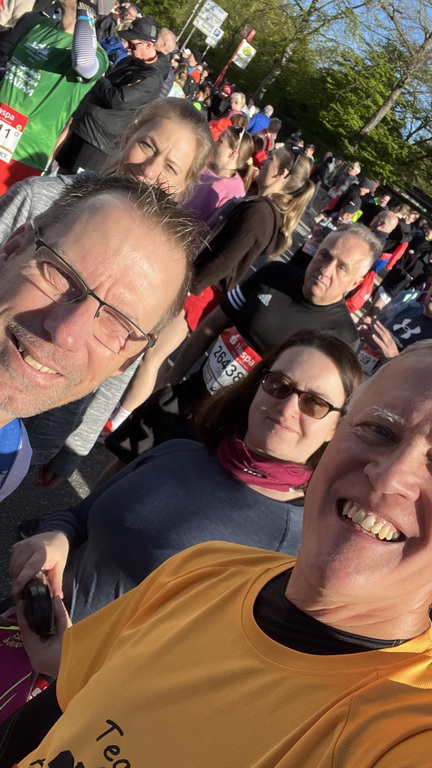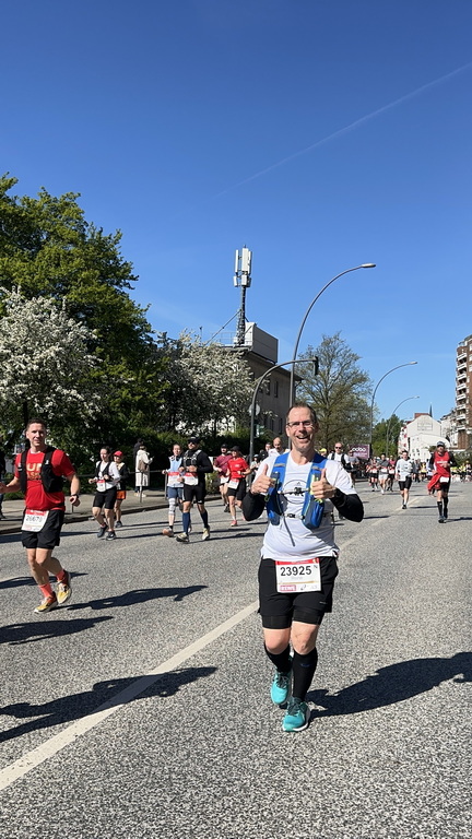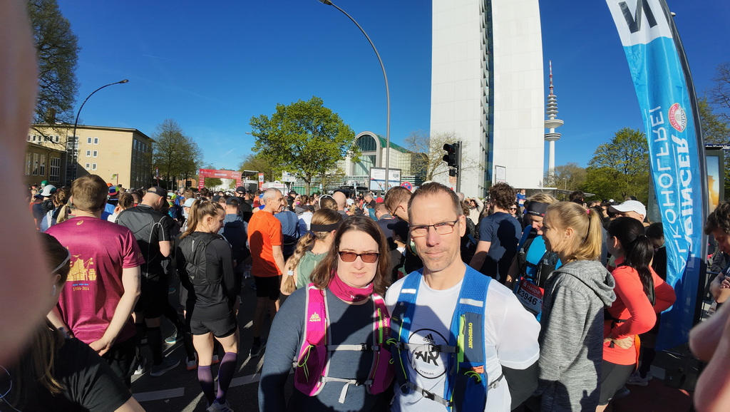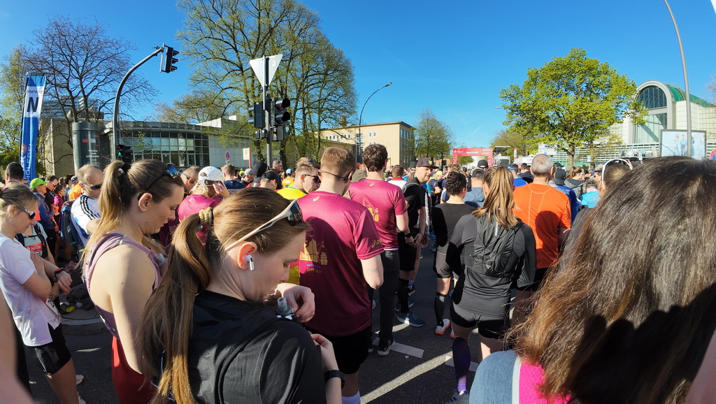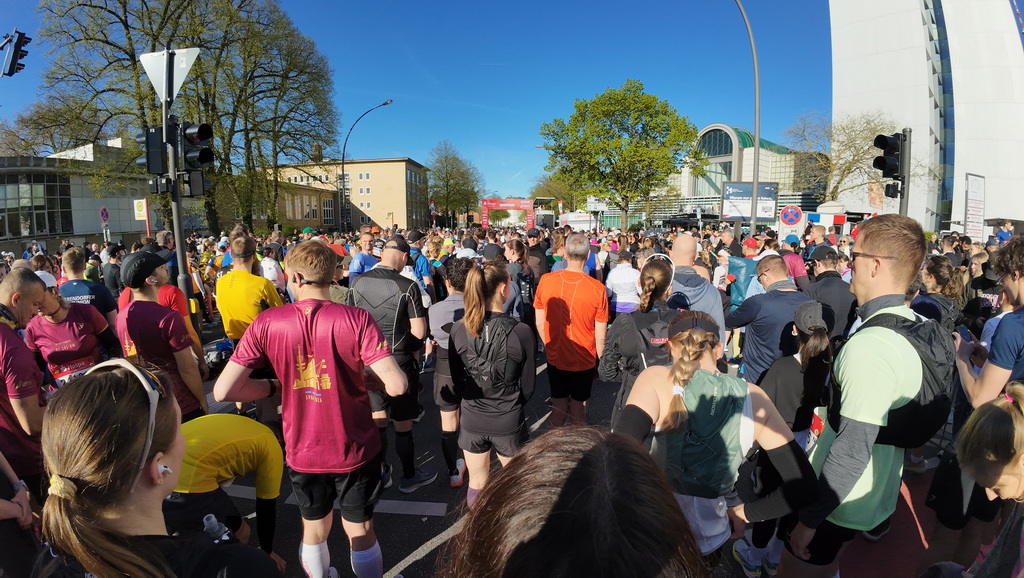 Mein letzter Hamburg-Marathon war 2023 und damals sind unsere Freunde Yvonne und René den Halbmarathon gelaufen. Diesmal trauen sie sich an den ganzen Marathon ran (ist aber nicht ihr erster) und ich mogele mich mit in ihren Startblock, um gemeinsam starten zu können, denn eigentlich wäre ich einen Block weiter hinten. Das wird hier aber auch gar nicht mehr richtig kontrolliert.