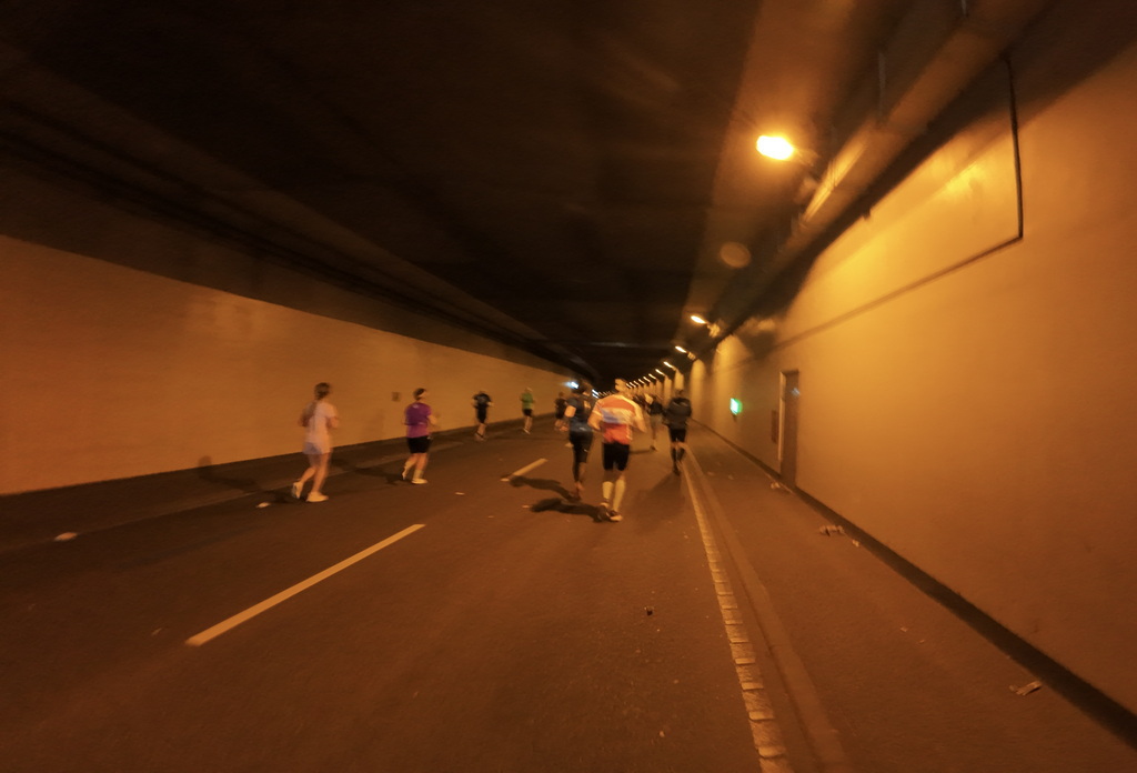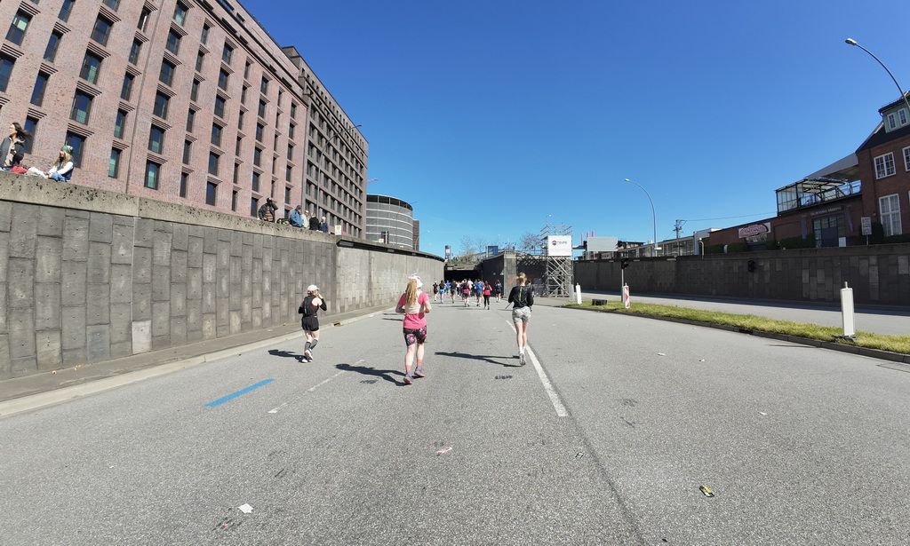 Weiter geht’s an der Elbphilarmonie und der Speicherstadt vorbei. Noch ein Blick auf das verspiegelte Spiegel-Haus (Achtung: Wortspiel) und dann geht es durch den langen Wallringtunnel (wo mich eine Tempoläuferin für 4:45 überholt) an die Binnenalster und über den Ballindamm an den Jungfernstieg.