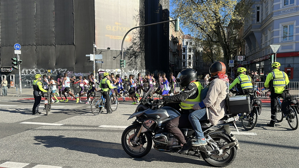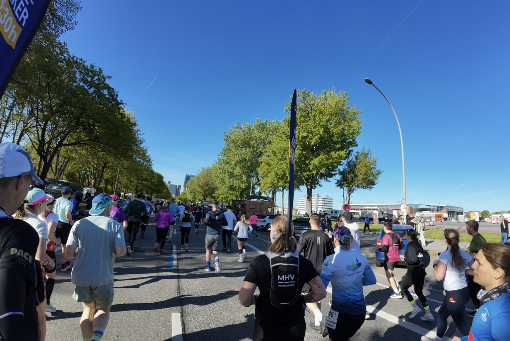 In der Zwischenzeit sieht Kerstin bereits die schnellen Läufer auf der Reeperbahn vorbeiziehen. Wir „langsamen Läufer“ warten derweil noch auf unseren Start.