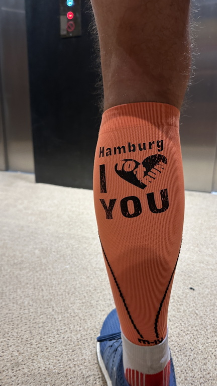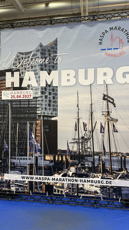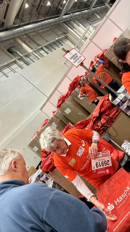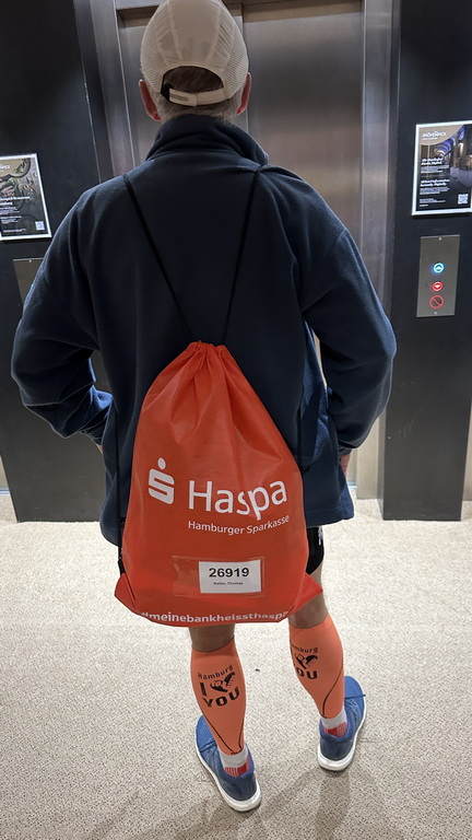 Also auf nach Hamburg! Bei der Startnummernausgabe bekomme ich meinen Starterbeutel von einer netten Dame, die mir erzählt, sie hätte vor 9 Jahren mit dem Laufen aufgehört. Sie ist jetzt aber schon 84 und hat eine Bestzeit von 2:48 (natürlich aus jüngeren Jahren).