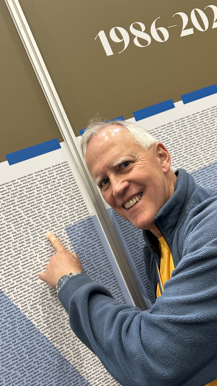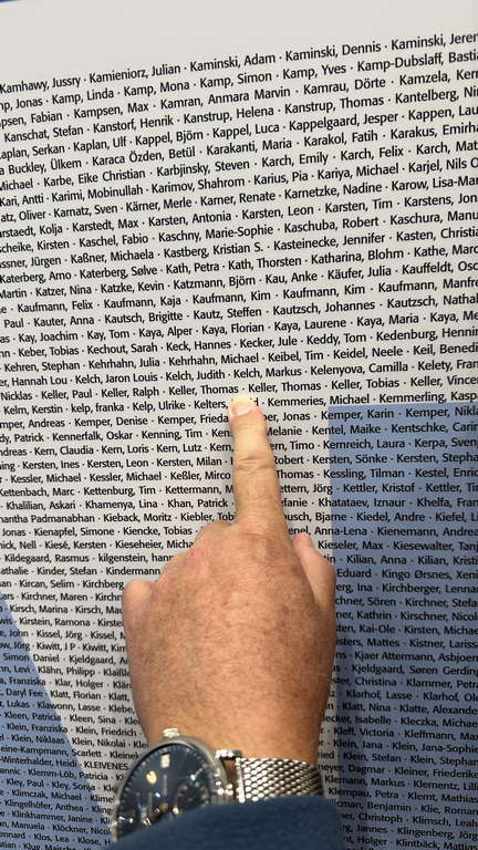 Auf der Namenswand finde ich mich auch ziemlich schnell. Aber was ist das? Ich stehe zweimal drauf. Muss ich jetzt zweimal laufen?
